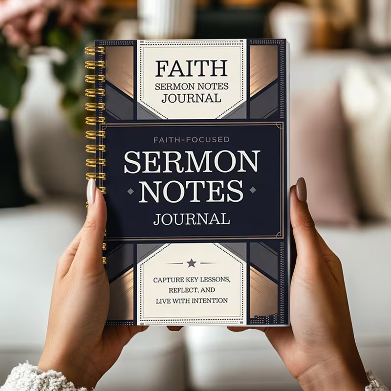 A thoughtfully designed notebook for recording sermon notes, prayer insights, and key messages during church services or Bible study.